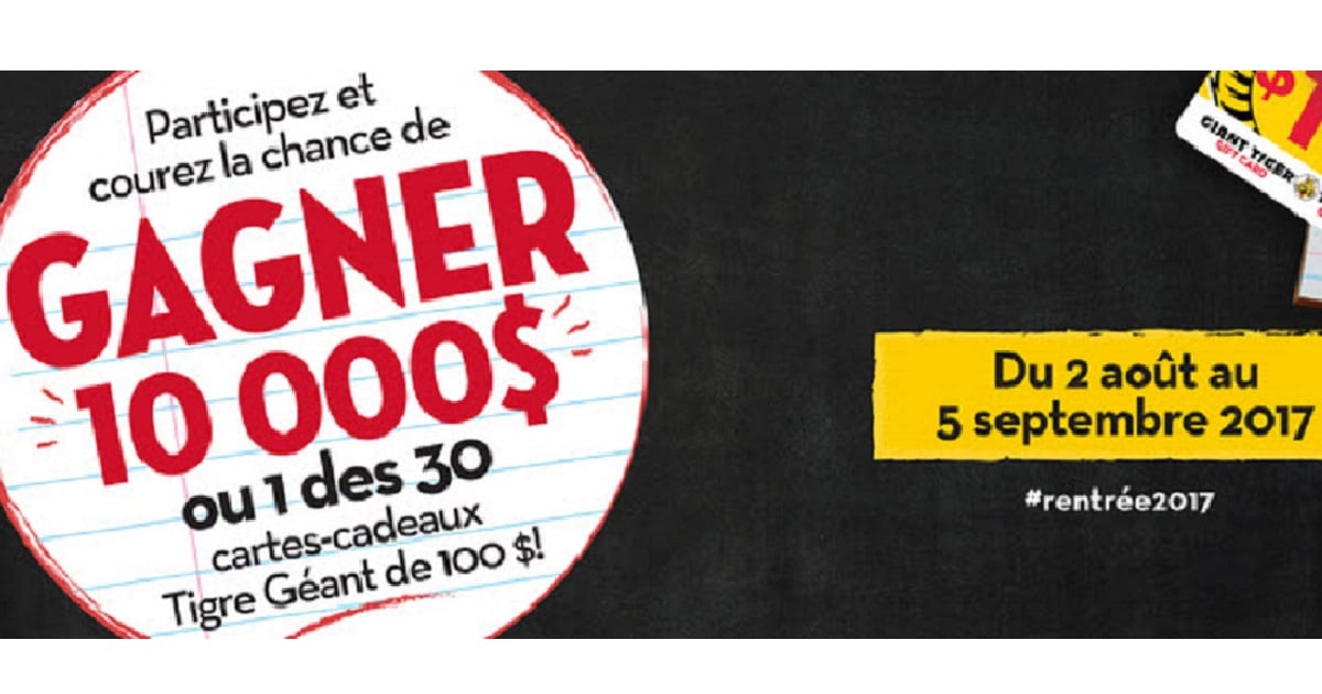 En jeu :10 000$ ou 3 des 30 cartes-cadeaux Tigre Géant de 100$ à gagner!