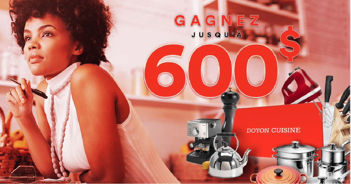 Chaque bonne réponse = 50 $ chez Doyon Cuisine (jusqu’à 600 $ / jour ) !