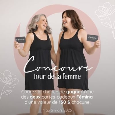 Participez et tentez de remporter une carte-cadeau de 150 $ chez Fémina, utilisable en magasin ou en ligne.