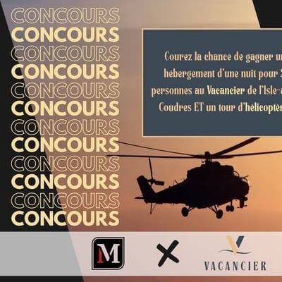 Participez pour remporter un séjour d'une nuit pour deux à l'hôtel Vacancier, avec tour en hélicoptère.